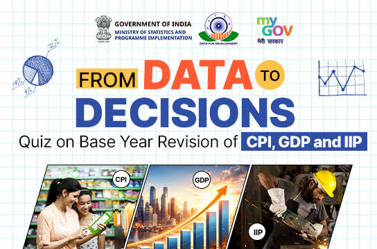 From Data to Decisions: Quiz on Base Year Revision of CPI, GDP and IIP is organized by the Ministry of Statistics and Programme Implementation (MoSPI) in collaboration with MyGov.