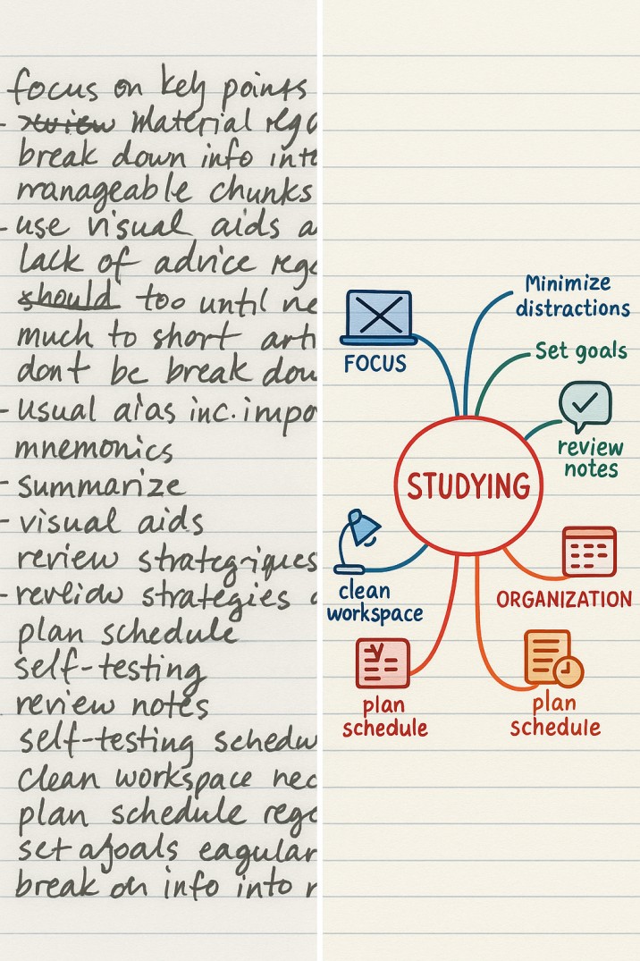 Traditional notes are linear, while mind maps are dynamic. They allow you to connect ideas in a non-linear way, which mirrors how the brain processes information, making retention stronger.