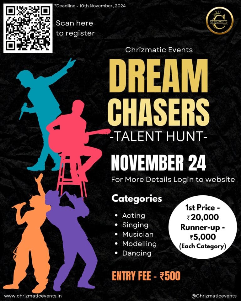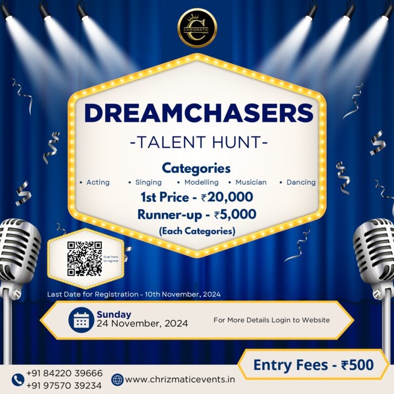 Hey there! We’re super excited to share that Chrizmatic Events is launching two amazing competitions designed to spotlight and nurture hidden talents. Get ready for Dreamchasers, a talent hunt with five exciting categories, and ShotCut, a dynamic short film-making competition.